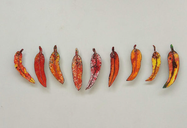 Set of 9 Gum Leaves - Oranges